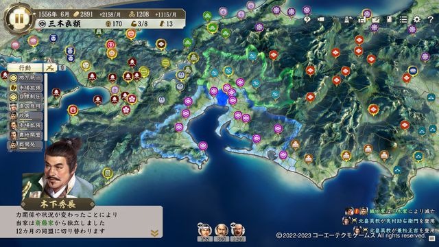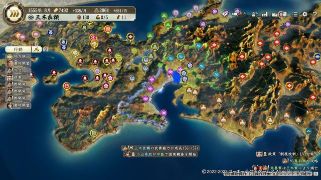本シナリオの三好の本拠は石山御坊北東の芥川山城で、早々に制度改新・弐を発令する。
