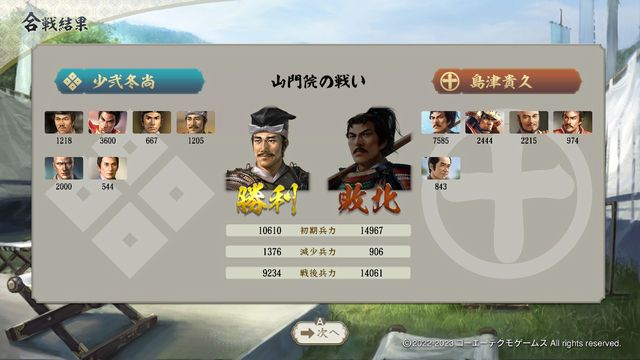 その後は有馬・相良・伊藤などを攻略して島津と戦おう、九州最南端で兵糧が足りない場合もあるが、東から攻めてくる勢力もいないのでじっくり戦っても問題はない