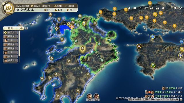 あとは動揺状態の伊万里城が残り、こちらは耐久が2500と低いので攻略は難しくなく、開始4か月ほどで龍造寺を滅ぼせる。