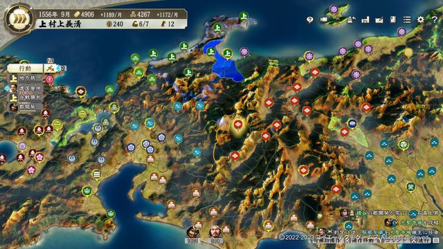 最初から「僧心得」を奉行にできる数少ない勢力の一つで、「学僧招聘」発令で多少武将を成長させやすい。
