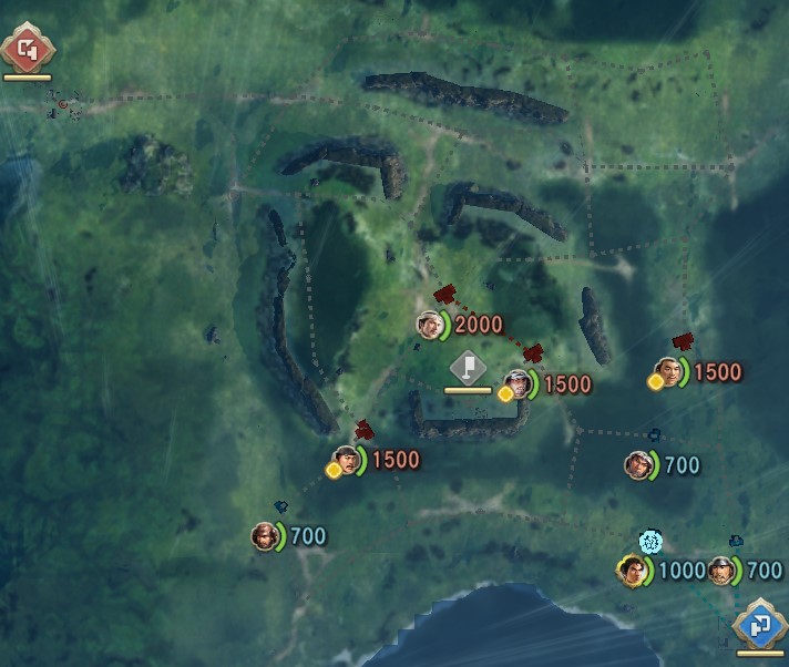 史実展開の場合は最初から南東端に大谷吉継1500が布陣しているが待機のまま操作不可。