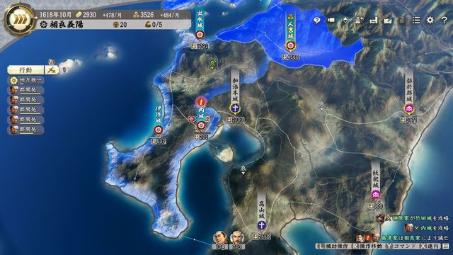 対馬は遠すぎるため序盤は一切攻め込まれないのが利点だが、それはつまり攻め込む際も腰兵糧の制約が厳しいということ。