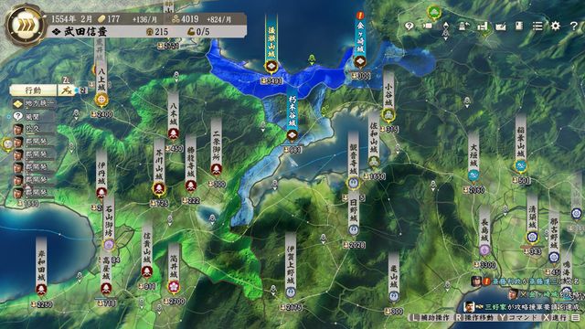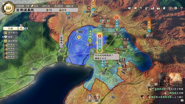 松平を吸収し三河・駿河を完全に掌握して10城まで勢力が拡大。