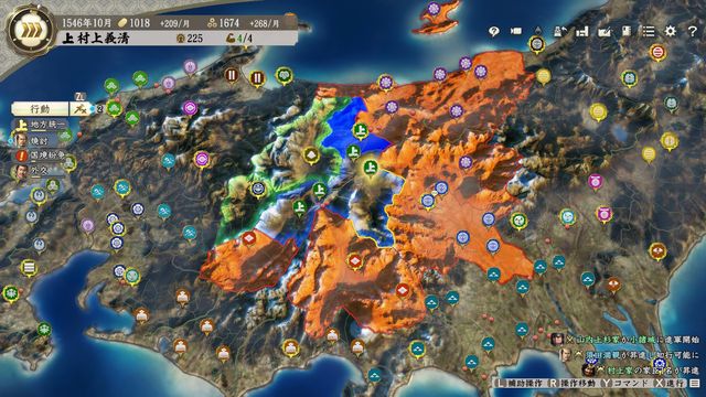 おまけに固有政策で制圧した郡の農村と市を掌握でき、氏康は制圧した郡の掌握状態を解除しない固有特性があり良い事尽くし。