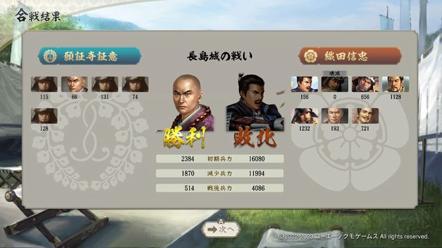 すぐに国衆などでの第二派が来るが、耐久が大幅に減っているため「伊勢長島討伐」が発生し長島城はここまで。