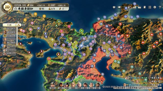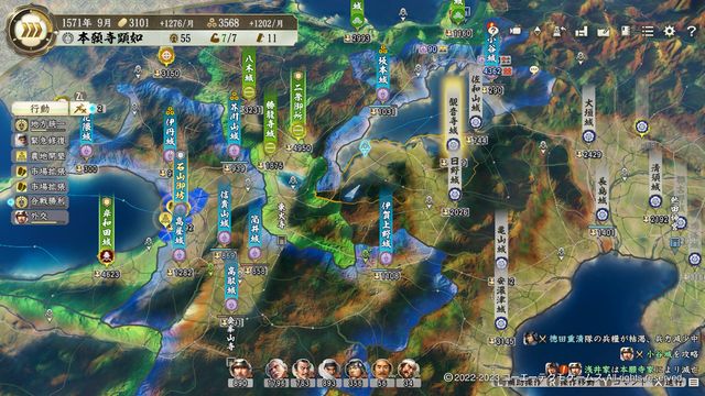 無事勝利できると威風の効果で織田のほとんどの城が180日間動揺し失った兵力の回復速度も激減するため、初動が大幅に遅くなる。