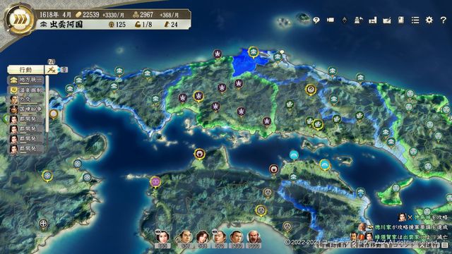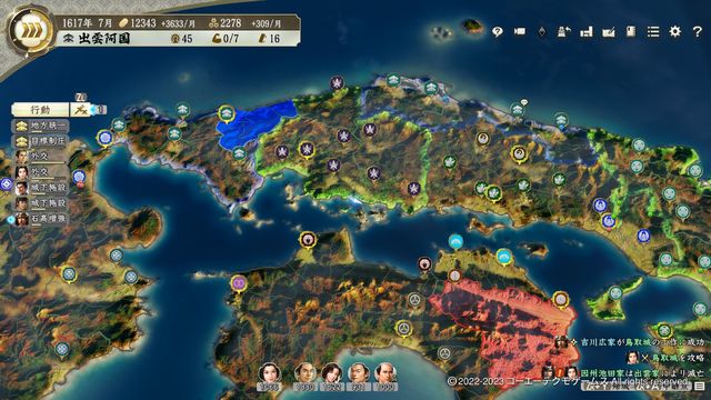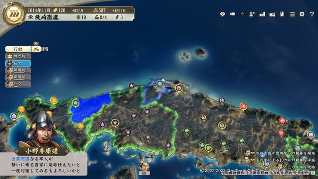 そうなるとクリア不可能ではないが、相当しんどいため(豊作込みで大坂城の兵数が7万を超えることも)、仮に準備不足だとしても遅くとも1622年中には徳川家と開戦できるようにしたい、そのためには速やかな拡大が必要不可欠である