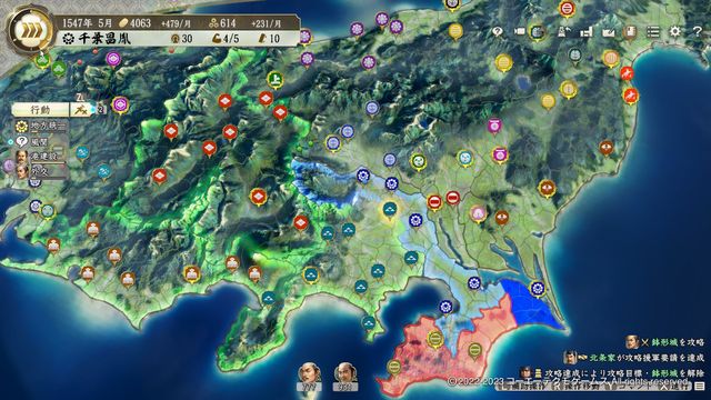 豊富な国衆に名所がシナジーを呼び、戦争自体には苦労らしい苦労はない。部将数と内政、そして時間が悩み所だろう。