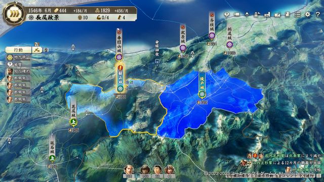ただし、こちらも武将が全く足りないため、城代の城ばかりになる点には注意が必要。