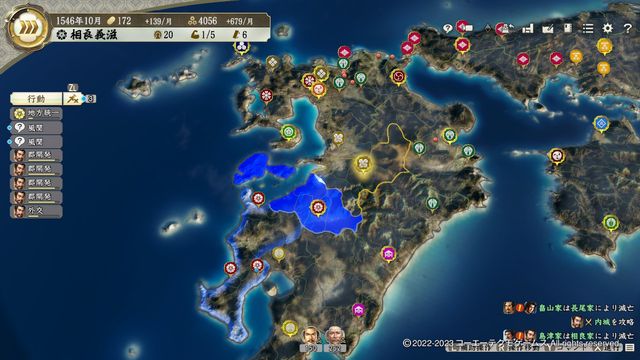 前半シナリオでは三好と隣接しているのが難点だったが、制度改新・弐で侵攻を抑制しやすいのも大きい。