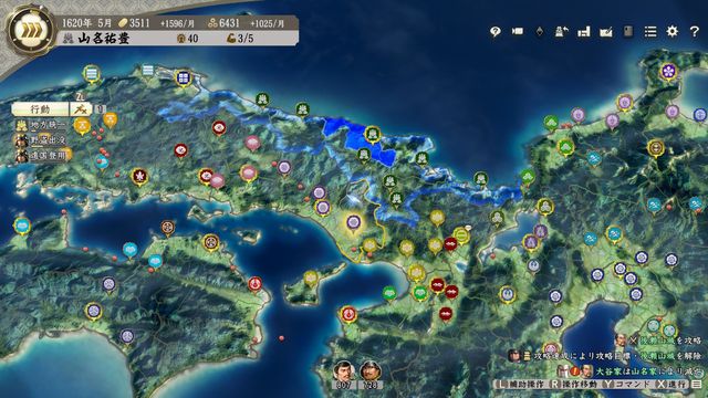あとは大内家・陶家の攻略で西に伸ばすか、吉川家・尼子家へ進軍するか、畿内進出に向けて早々に東を攻略するか。
