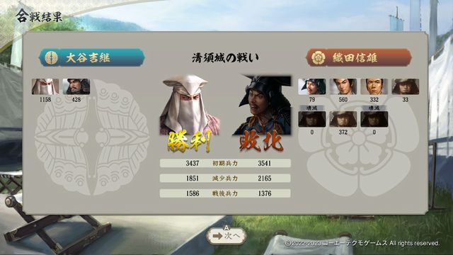 徳川とはまだ差があるので、その次は伊達戦を開始し、さらに武将を充実させた方が無難。