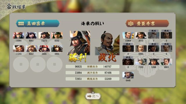 攻略完了すると名将たちがほぼ全員こちらの前線に配置されてしまい、合戦の難易度が大きく上がる。