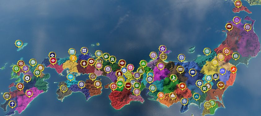 - 初期で同盟等の関係がない上に結ぶ大名も少ない、初期で大勢力がおらず、威信はみんな低いという点から、進軍が早いと中盤以降ものすごい勢いで従属が決まる。有効な従属は見逃さないようにしよう。 --